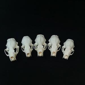 This mink skull is handcrafted using a real animal skull (from animals that have died naturally on farms). The mink skull features an interlocking jaw, which is separate from the skull.