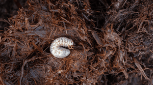 The rhinoceros beetle larvae ( grub ) hatches from eggs and develop into pupae and the pupae eventually develop into a beetle. The eggs take about three weeks to hatch. When the larvae is full grown, it forms a cell in the soil and lines it with faeces which solidifies into a waterproof layer. The adult beetle hatches out and digs its way to the surface after about a month. The adult lives for about 2-4 months.